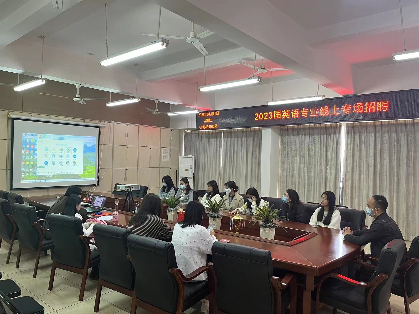 本网讯:为提高葡语和英语专业员工的就业质量和就业率,推进校企良性互动,4月11日,人文科学系特邀浙江宁波凯越集团、广州茶里集团有限公司、黄金屋科技有限公司在崇善楼Z1D1阶梯教室举办葡语及英语专业专场招聘会。同时,人文系邀请厦门市纳丝达无纺布有限公司、深圳市清振拓电子科技有限公司举办英语专业线上招聘会。线下招聘会由葡语教研室主任肖红英主持,线上招聘会由外语教研室主任顾玲主持。