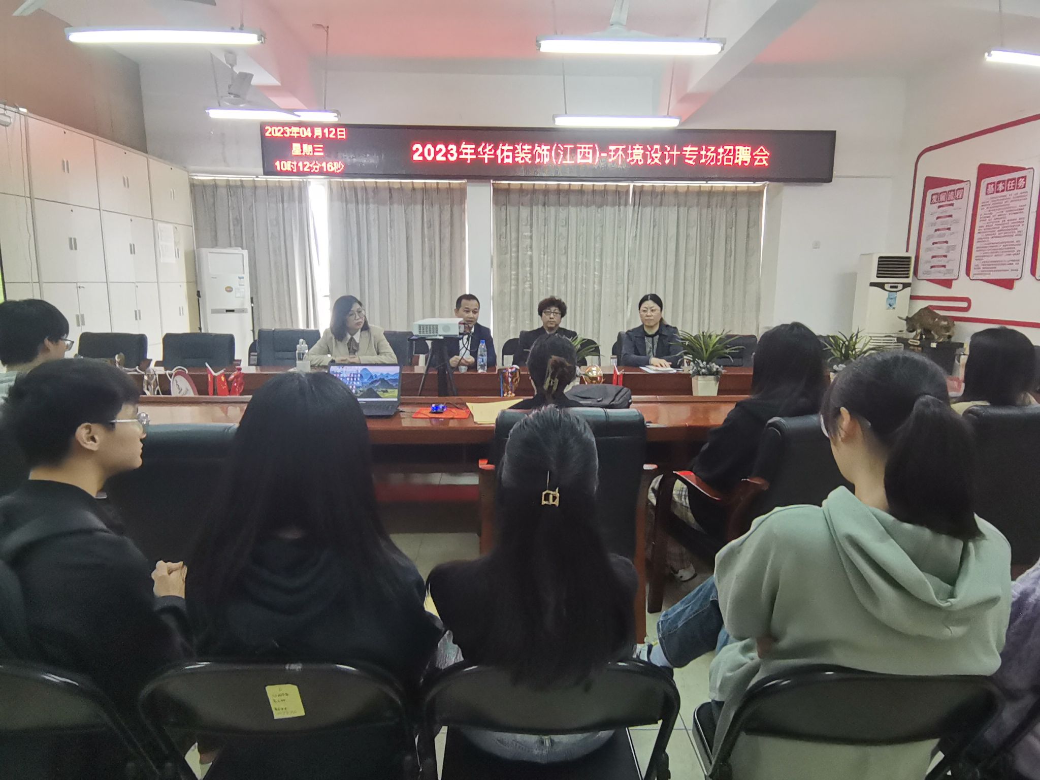 会上,曾庆涛结合自身工作经历,对目前就业形势、政策进行了解读和分享,强调职业规划及选择的重要性,鼓励学弟学妹们要敢于拼搏、努力奋斗,有针对性地做好自己的职业规划,选择最适合自己的职业道路。接着,介绍了华佑装饰的基本情况、招聘岗位、发展前景、福利待遇,并与同学们进行了积极互动,解答在场同学的提问,并欢迎同学们到华佑装饰集团实习和应聘。