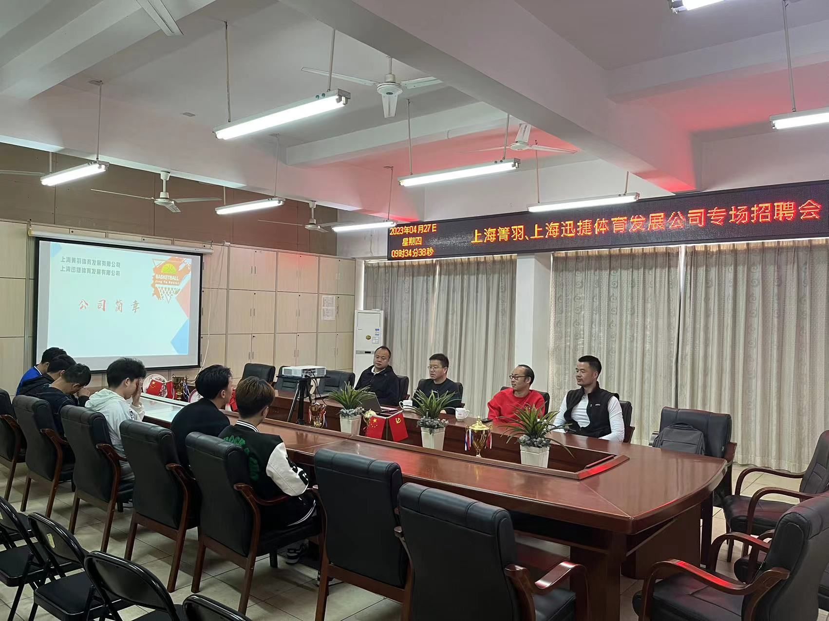 本网讯:为扎实推进体育类毕业生就业工作,为毕业生提供优质、精准的就业服务,4月27日上午,人文科学系特邀上海箐羽、上海迅捷体育发展有限公司负责人朱惠忠在主楼Z807举办社会体育指导与管理专业专场招聘会。会议由王军堂主持,2023届社会体育指导与管理专业毕业生参加。