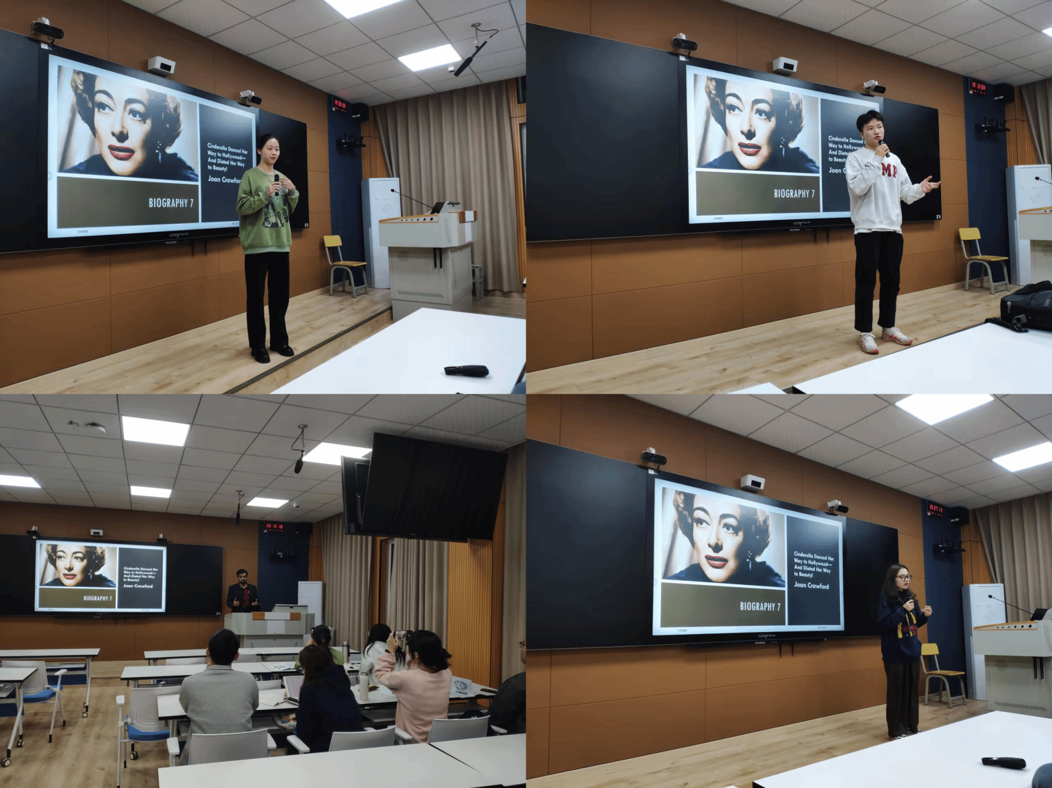 每次分享会主要聚焦于Five Minute Biographies这本书。在探讨该书所涉及的名人事迹的过程中,两位外教与同学们之间展开了精彩的思维与语言的交流。在书籍分享环节中,每位同学都流利地分享了自己的读后感悟,并朗读了自己最喜欢的段落。有些同学还结合了自己的个人经历,讲述了书中最触动自己的部分,使在场的同学们能够更好地理解所分享书籍的核心思想。