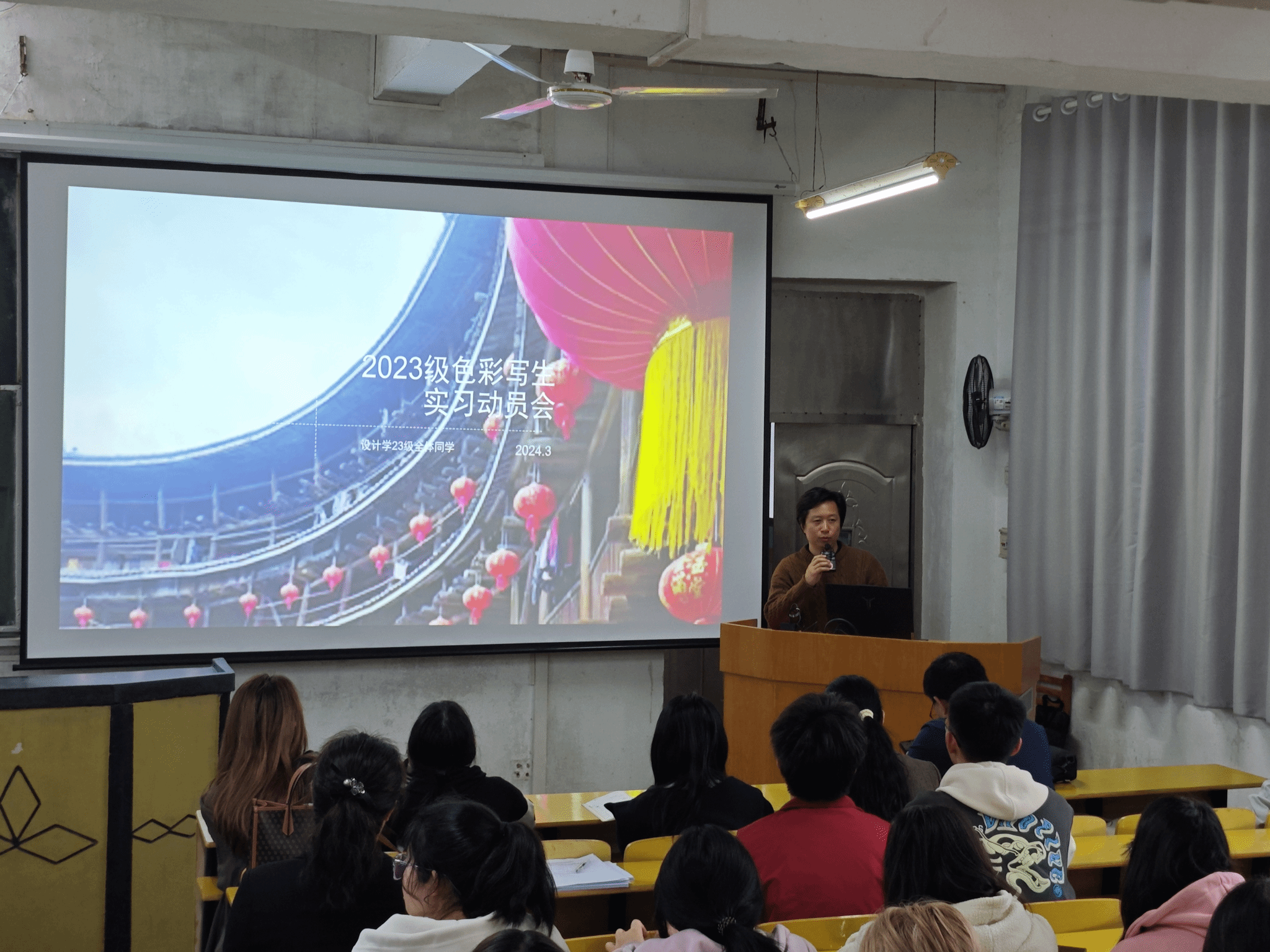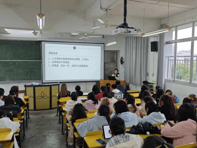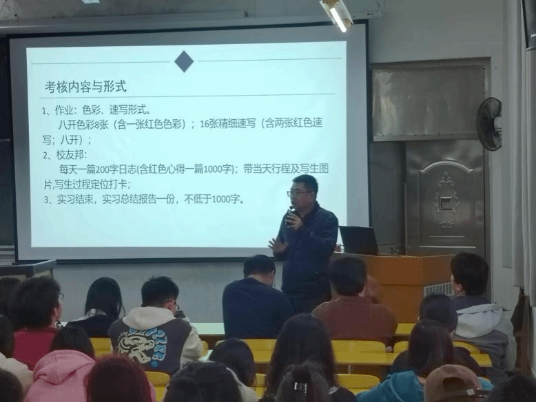 会议开始由倪文杰向大家介绍色彩写生实习的目标要求、实习计划安排、实习基地路线规划和食宿情况、实习具体费用以及其他注意事项。随后何建军、周娟、赖文清分别强调了出行安全、纪律等事项,提醒班委要协助带队老师严格管理,并预祝本次实习圆满成功。最后全体带队老师也各自从专业学习和纪律、安全等方面对同学们做了具体要求和安排。